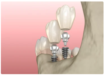 임플란트는 자연 치아와 가장 유사하게 만들어 사용할 수 있어 이질감 없이 사용할 수 있는 장점이 있습니다. 임플란트는 치아를 복원하는 데에 브릿지보다 더 나은 선택지가 될 수 있습니다. 브릿지를 사용하는 경우 앞뒤에 있는 치아가 상할 수 있다는 단점이 있습니다.